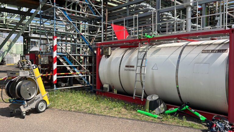 Vor jedem Befahren wird der Tank gasfrei gemessen. Sauerstoffgehalt, Explosionsgrenzen und toxische Gase werden geprüft. Die Ergebnisse werden dokumentiert. Sicherungsposten überwachen Arbeiten kontinuierlich, halten Kontakt zu den Reinigungskräften im Tank und sorgen im Notfall für eine schnelle Rettung. Geeignete Rettungsausrüstung steht dafür bereit. In Ex-Zonen kommen ausschließlich ATEX-konforme Geräte zum Einsatz. In Stahltanks werden Arbeiten mit elektrischen Geräten ausschließlich mit Trenntraffo durchgeführt. Ihre Erlaubnisscheinverfahren (Permit-to-Work-Verfahren) regeln die finale Arbeitsfreigabe.