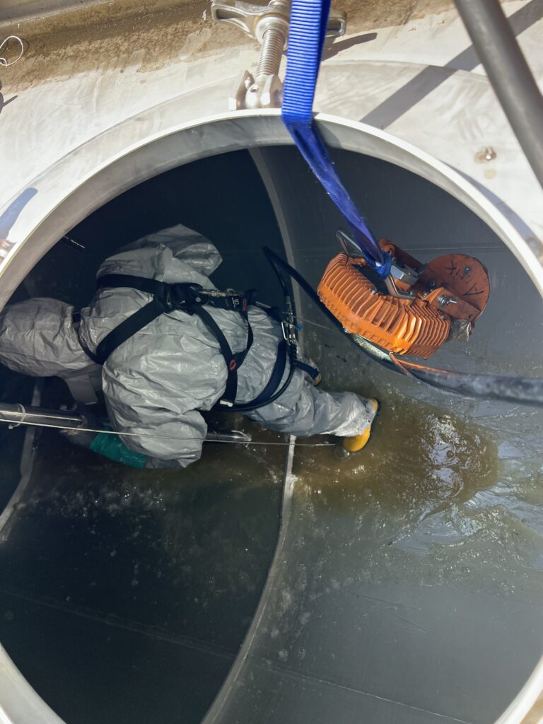 Für eine Innenreinigung muss selbstverständlich der betreffende Tank außer Betrieb sein. Häufig können Behälter aber im Wechselbetrieb gereinigt werden. Während der Reinigung des ersten Tanks bleibt ein anderer in Betrieb und kompensiert den Ausfall zumindest teilweise. Die Planung Ihrer Tankreinigung erfolgt in enger Abstimmung mit Ihrer Produktion, damit Auswirkungen minimal bleiben.